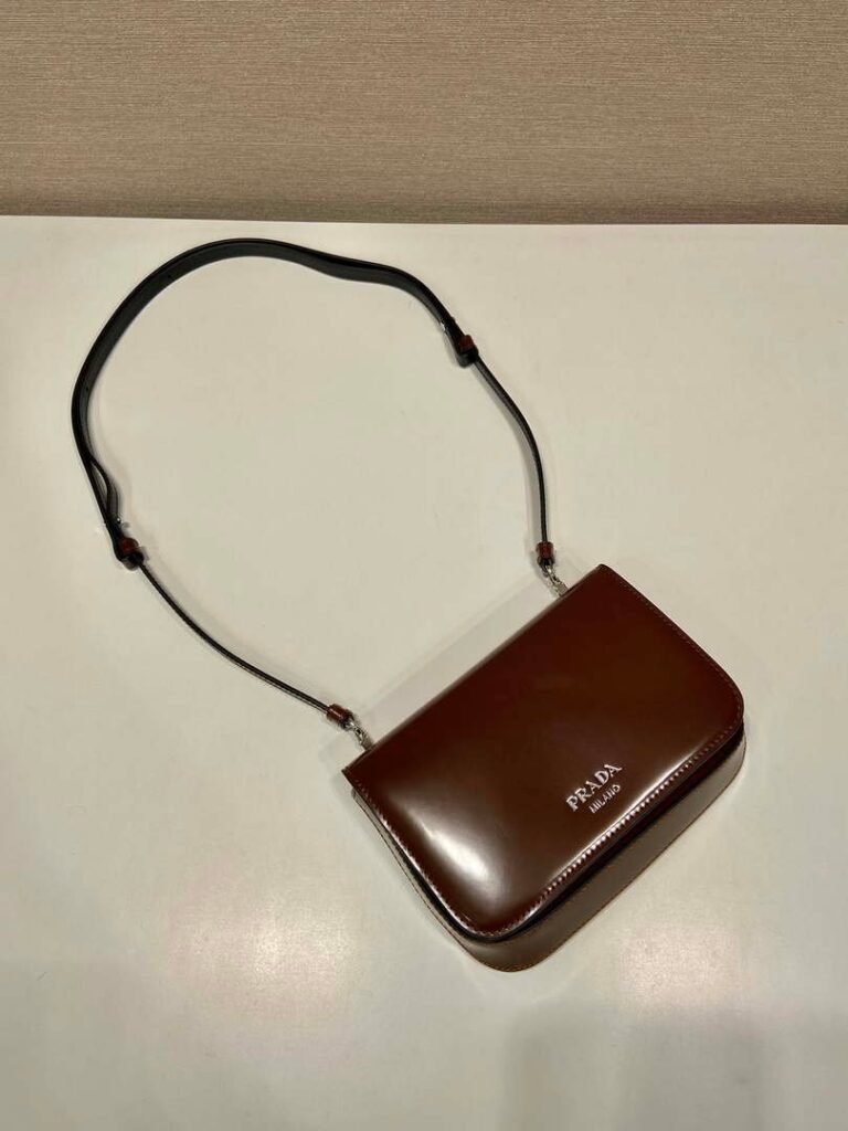 Replica Prada 2VD061 Black Brushed Leather Mini-bag With Shoulder Strap Brown