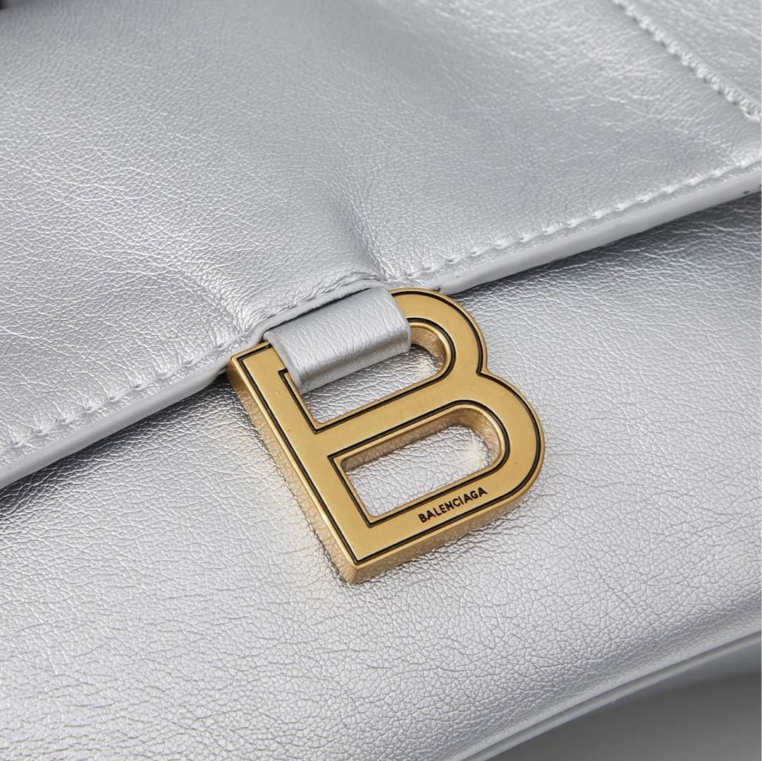 The latest long-handled Hourglass bag from Balenciaga, Balenciaga Hourglass Hourglass, has a particularly strong sense of styling and is stunning at first glance. The entire bag has a lot of curved lines but also has edges and corners. It is both firm and soft. The contour of the entire line is very similar to the Eiffel Tower in Paris. No wonder it is so beautiful! The small size is 25x15x8.