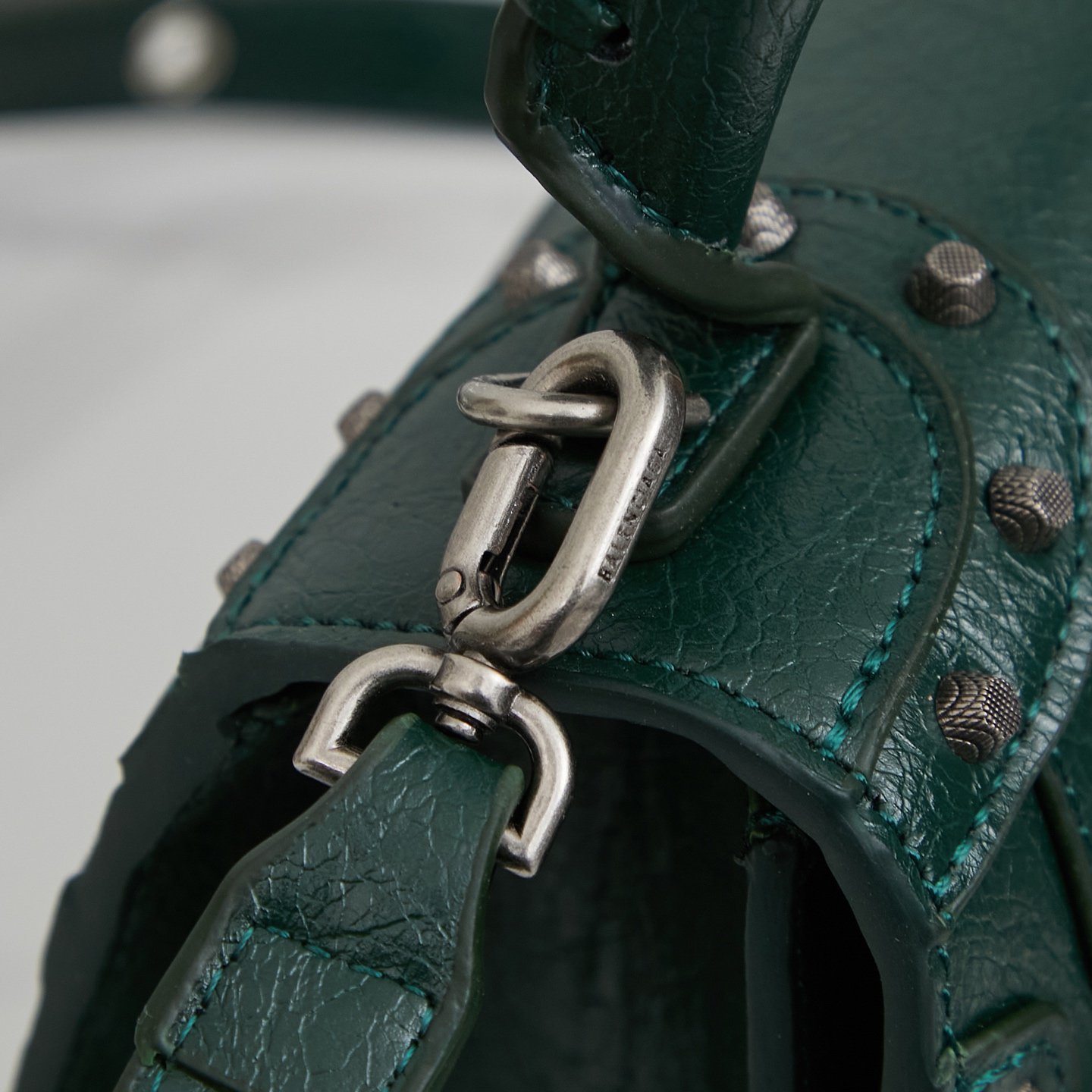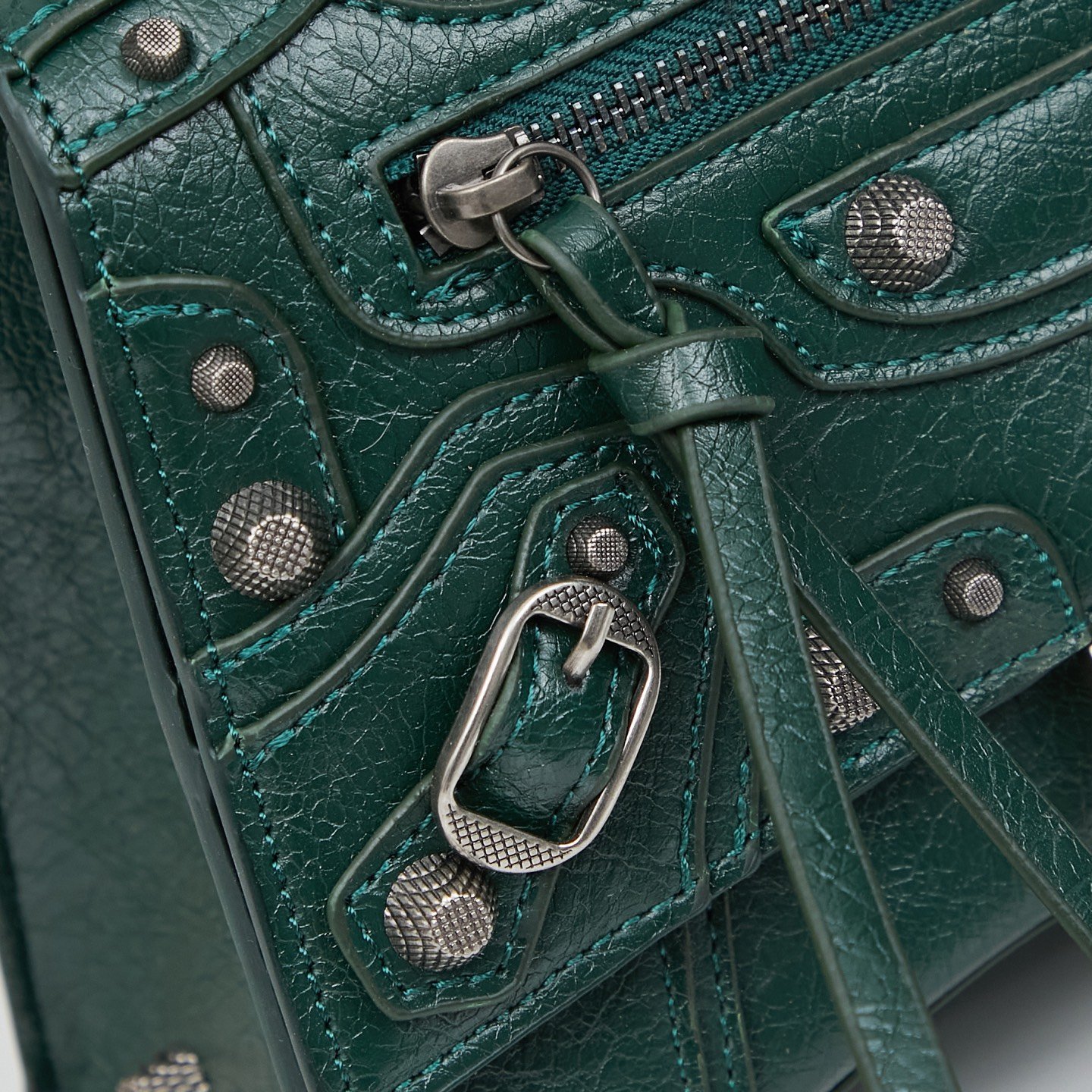 Small size, with box and motorcycle Hourglass bag|||Balenciaga motorcycle Hourglass bag. Have you heard of the collaboration between Balenciaga Hourglass and motorcycle bag? Look at this combination of Hourglass bag and Le Cagole #motorcycle bag#. The Hourglass bag body is covered with rose studs of motorcycle bag. Black Arena lambskin is full of punk style and quite interesting. Size: 23x16x10.
