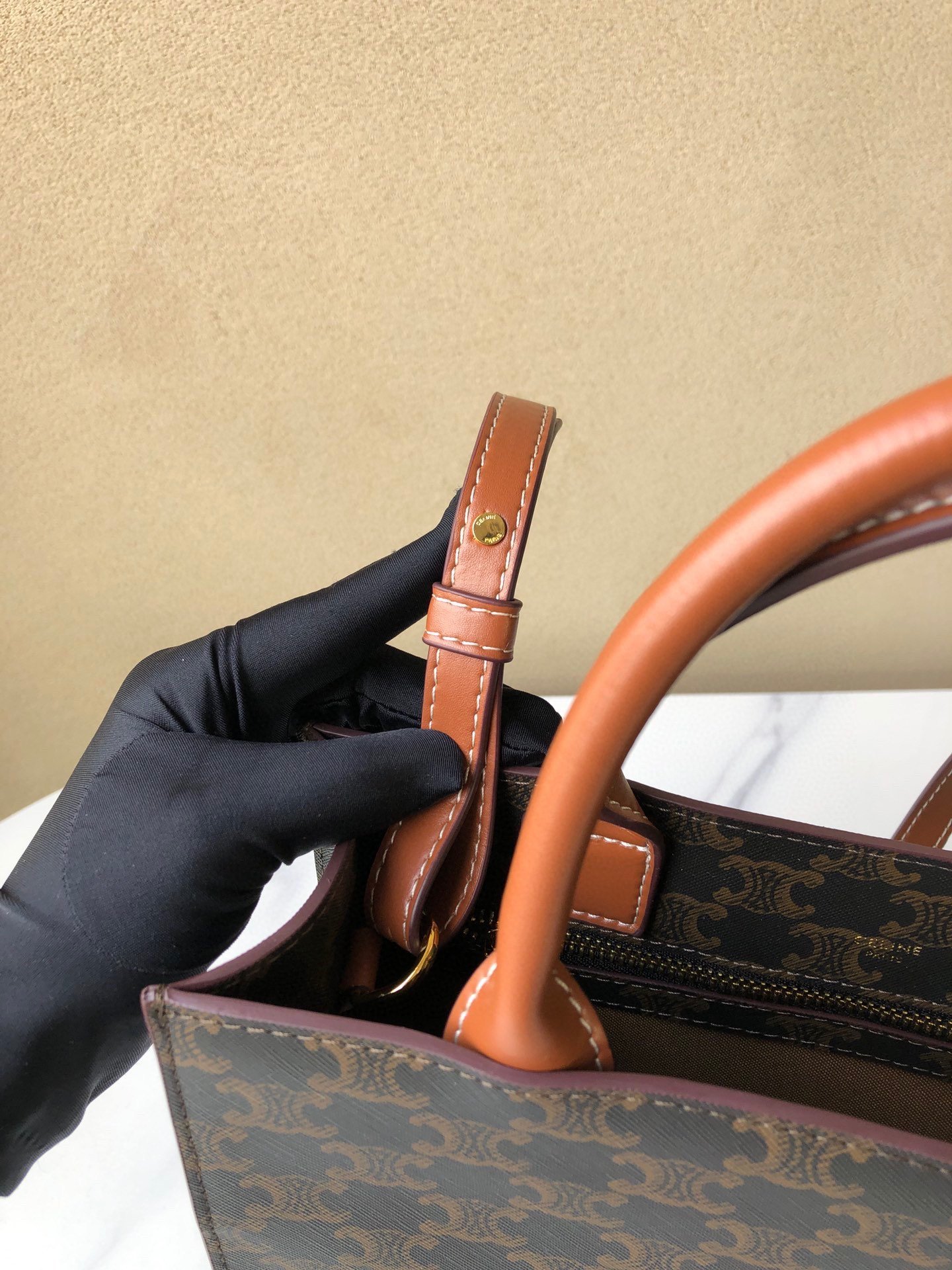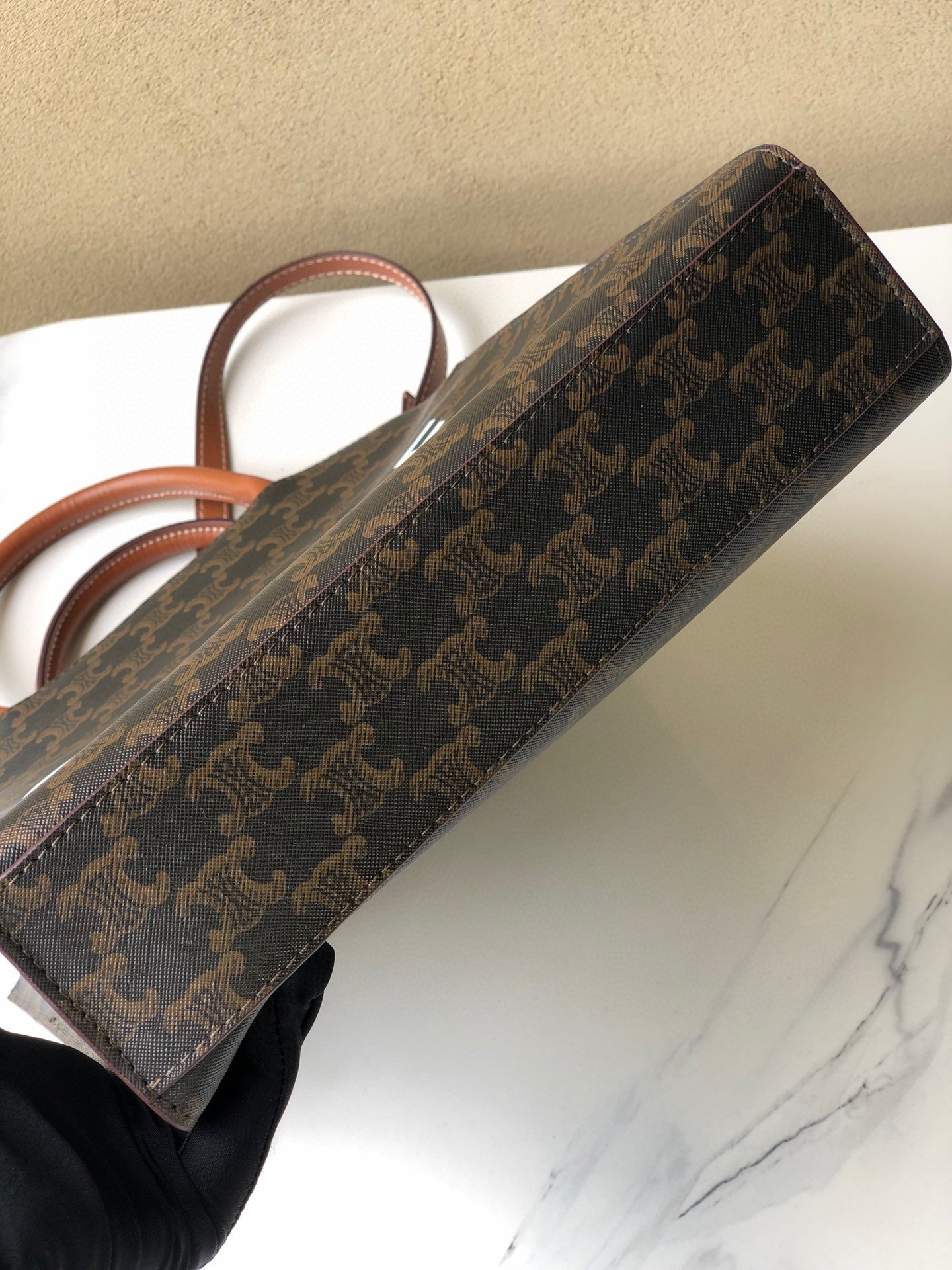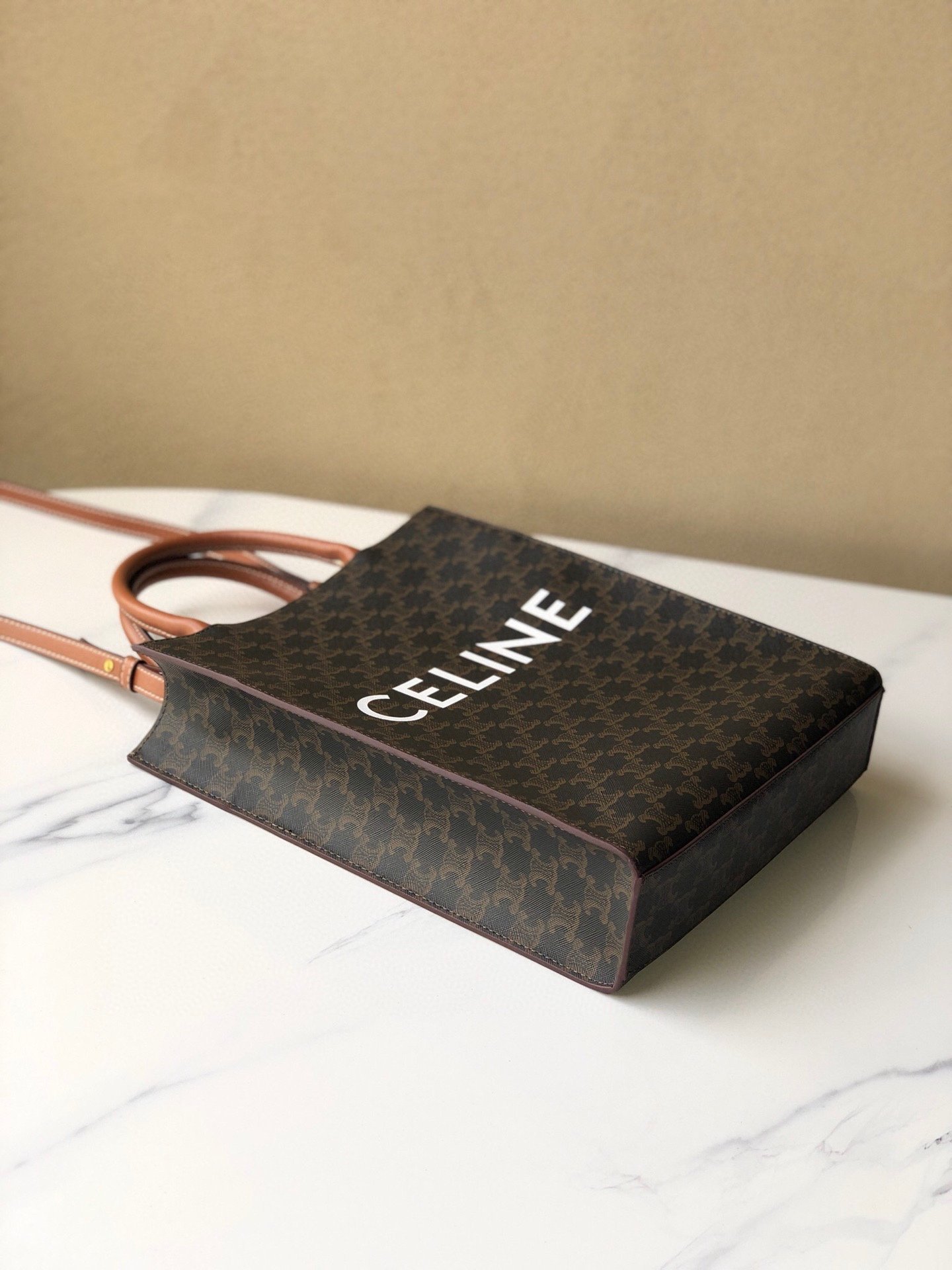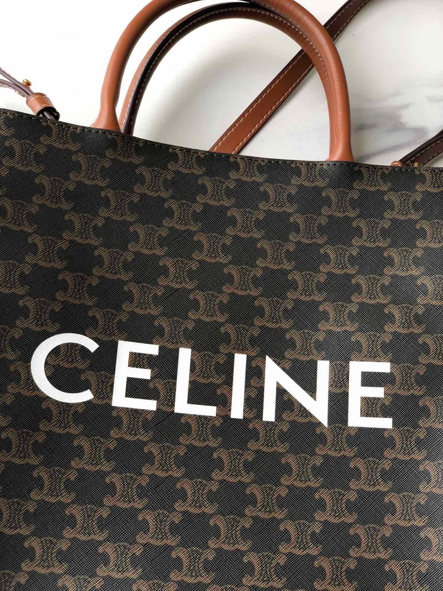 👑Celine tote bag # medium-sized CELINE TRIOMPHE CABAS tote bag. Versatile tote. Classic Triomphe monogram series. Can be carried by hand or on the shoulder. Suitable for everyone. Highly recommended by bloggers and celebrities. Calfskin + PVC. Size: 11 x 13 x 3 inches.