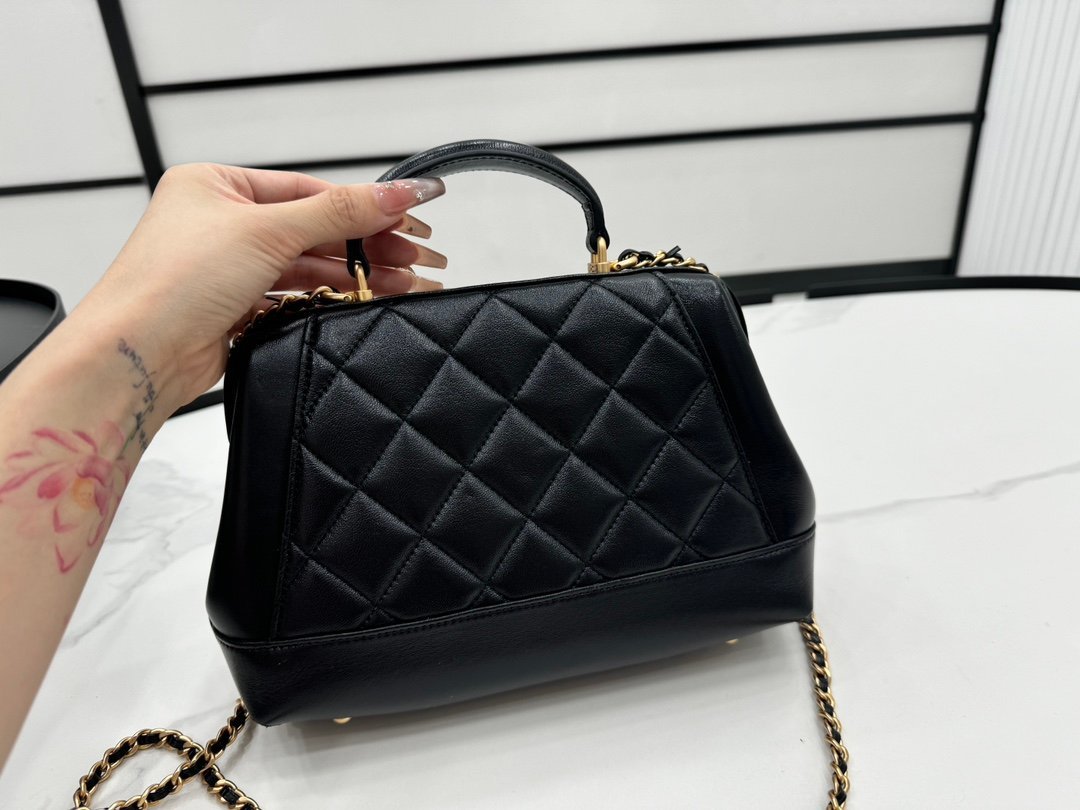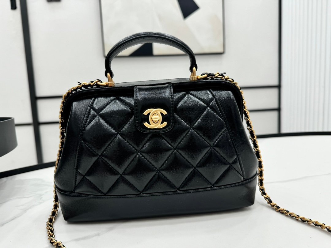 AS4959 Chanel 24A handmade visit series, doctor bag, super beautiful in kind, oil wax leather with metal chain, classic rhombus design, retro and fashionable, showing noble and elegant, a favorite one, size: 16 × 23.5 × 8cm