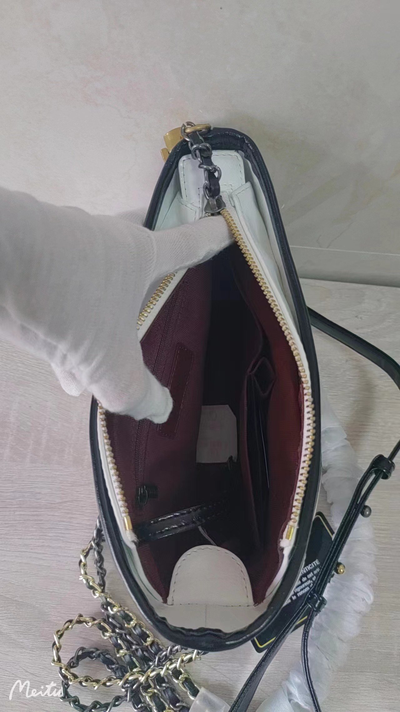 Material: Vintage calfskin, smooth calfskin, gold metal, silver metal and ruthenium metal