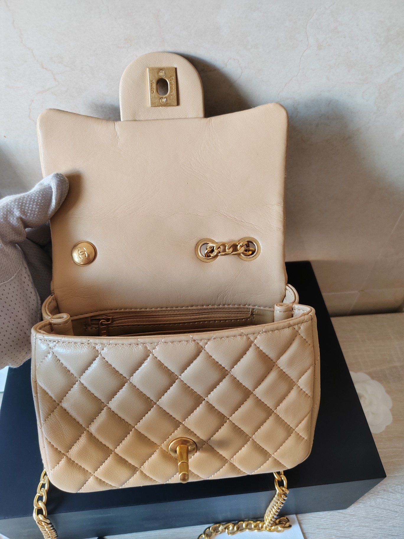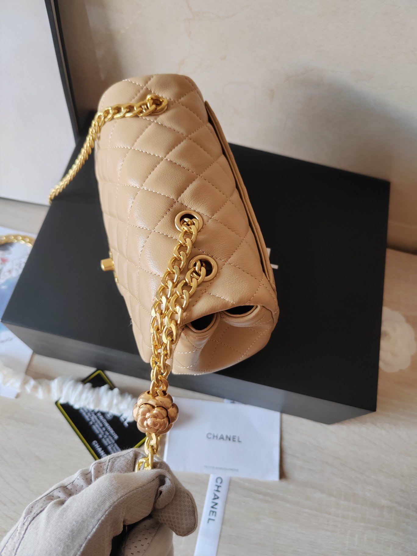 The 23s camellia adjustable buckle series. The main design of the S series every year continues the classic and inherits the previous gold ball, gold column, football, walnut ball and heart-shaped adjustable buckle. It is very beautiful, but the camellia has more the essence and soul of Chanel! The camellia has been interpreted differently for hundreds of years. It still appears relatively rarely on bags! Model number: 902620 small size: 13-18-7cm.