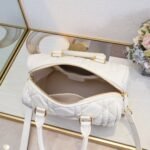 This Dior Groove .25 handbag, part of the winter ready-to-wear collection designed by Maria Grazia Chiuri, is both elegant and stylish. Crafted from blue Oblique-patterned fabric, it features a leather key pouch adorned with the Christian Dior Paris logo and embellished with gold-tone star accents. The key opens the zip-lock closure, and the spacious compartment includes a slip pocket and a zip pocket, perfect for storing daily essentials. It comes with a leather top handle and an adjustable, detachable shoulder strap, allowing you to carry it by hand, over the shoulder, or crossbody, making it ideal for everyday looks. The zip closure is complemented by a lock engraved with the Christian Dior Paris logo. The leather key pouch, featuring the Christian Dior Paris logo and vintage gold-tone metal stars, comes with a key. Large size: 25 cm.