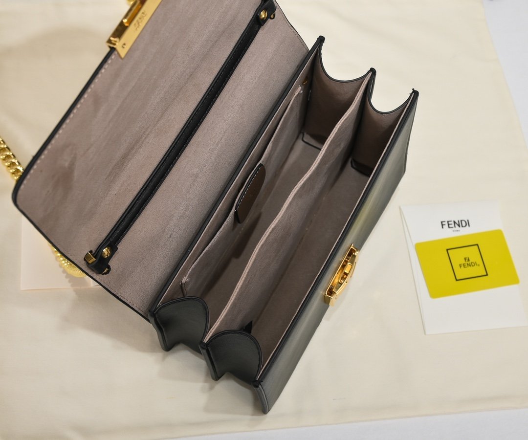 FEND1 launched a new fashion statement Kan U handbag, which cleverly combines functionality and modernity. All-inclusive relief design, visual and hand feel are super nice. Classic FF Logo buckle with exquisite retro metal details, or single shoulder or oblique span, upper body retro and stable Model: 557728 Size 25x17x10