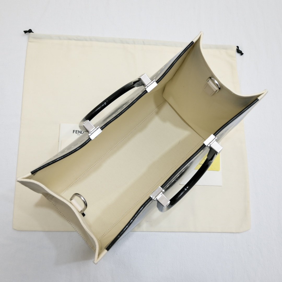 Model 4403 is in stock again: Sunshine medium handbag, patent leather material, engraved with FENDI ROMA letters showing natural canvas lining. Brown plexiglass hard handle FÉŃĎI TOTE tote bag “Sunshine handbag” simple letter LOGO design! Just holding it gives a great aura and doesn’t hurt the hand. The overall retro feeling is extremely strong. It is very suitable for fashionistas who like retro style. Highly recommended hard goods. 💥