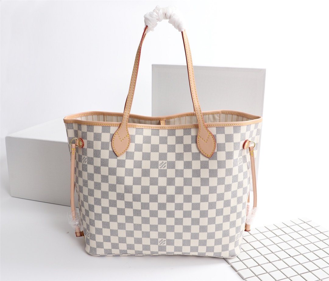 ✨NEVERFULL medium handbag🎀M40995 M40996 N41358 coffee checkered Neverfull classic handbag. Explore the delicate details inside the bag. The most praiseworthy is the detachable zippered clutch. It can be used alone as an exquisite clutch bag or as an additional pocket. ❤32 x 29 x 17 cm