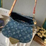 Upgraded version M46829 Sunset handbag focuses on Monogram Denim canvas. This material is made through multiple processes. Cotton yarn certified by the Global Organic Textile Standard is used to weave the Monogram pattern and then bleached. The sand washing treatment of the finished product creates a unique look, and the brand’s buckle adds a striking style. 27.0 x 18.0 x 3.0 cm.