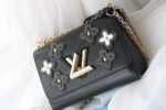 The Flower Tinsel theme in Louis Vuitton’s haute couture series is for the Twist medium handbag, adorned with a unique pattern: multiple layers of leather and studs reinterpret the Monogram flower. The rivets of the brand’s classic luggage are transformed into elegant decorations, complementing the exquisite black Epi leather body. The shape is small, and the unique curved base increases the capacity of the handbag. The adjustable chain is suitable for cross-body or elegant shoulder carrying. Medium size: 23*18*8cm.