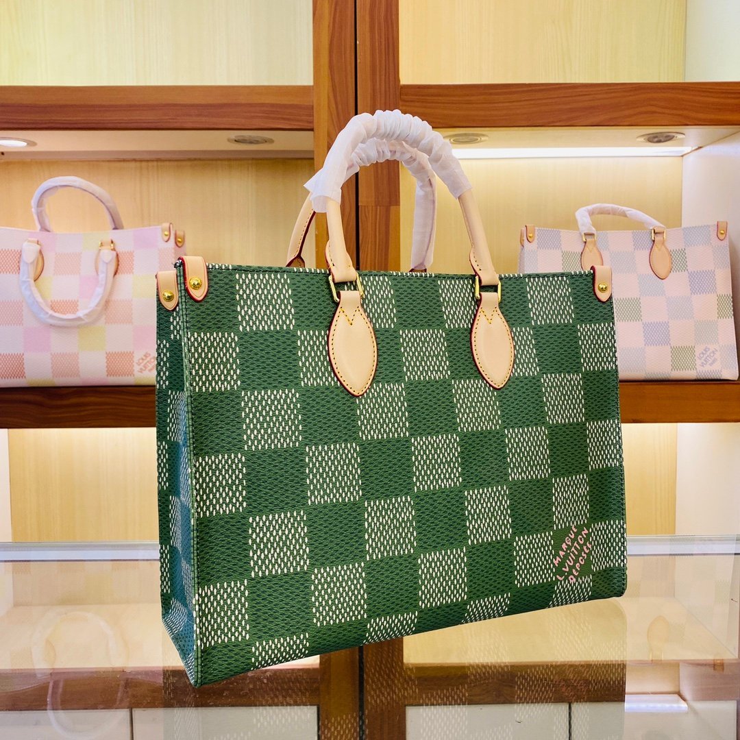 The Onthego medium handbag separates the classic Monogram canvas and Monogram Reverse canvas on both sides, presenting different styles at will. Toron double handles and shoulder straps enable a variety of carrying methods.