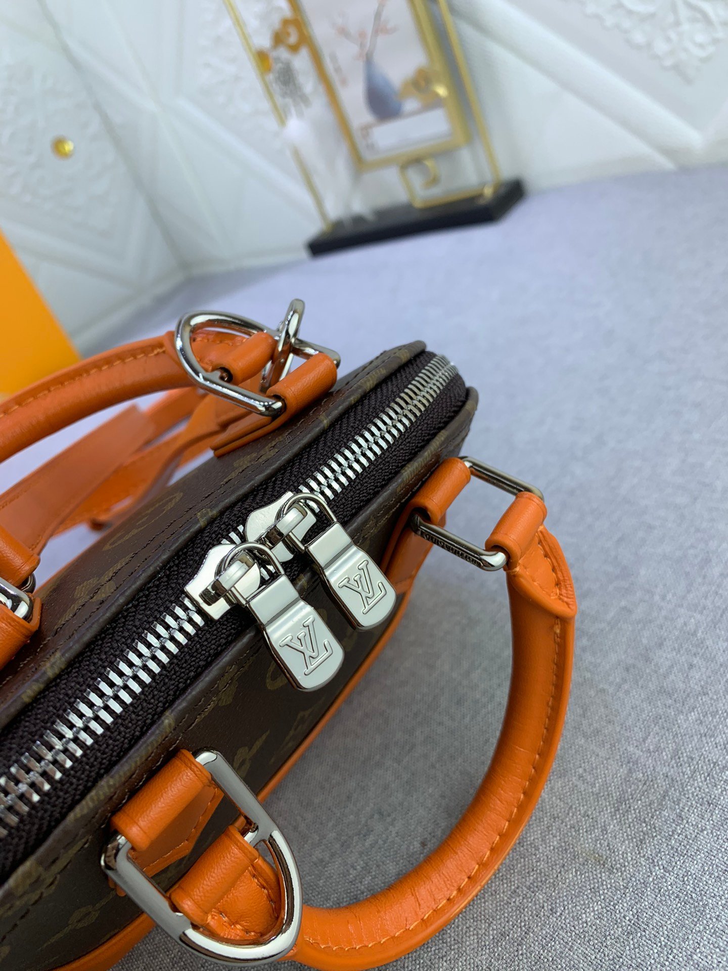 Mini shell bag series. New launch Nano Alma handbag. The Nano Alma reproduces the symbolic Alma bag in a miniature version. Louis Vuitton’s signature Monogram canvas material coordinated with decorations of natural leather. A delicately crafted item that combines traditional charm and modern functionality. When the double zipper is opened, the interior design with surprisingly ample storage space is revealed. With two leather handles and an adjustable and detachable shoulder strap, multiple styles can be created.