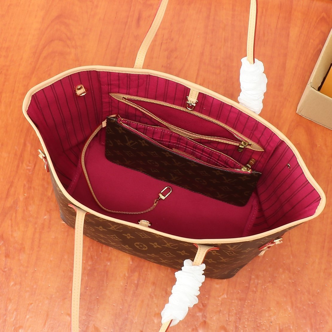 Original high-quality‼️ LV NEVERFULL medium handbag M40995. Louis Vuitton presents a new interpretation of the classic Neverfull handbag and explores the exquisite details inside the bag. The redesigned inner bag features a fresh fabric lining and retro details inspired by the Louis Vuitton archive. The most remarkable is the detachable zippered clutch, which can be used as an exquisite clutch bag on its own or as an additional pocket. The bright lining color adds more vitality and liveliness to the classic Monogram canvas. Size: 32 X 29 X 17CM.