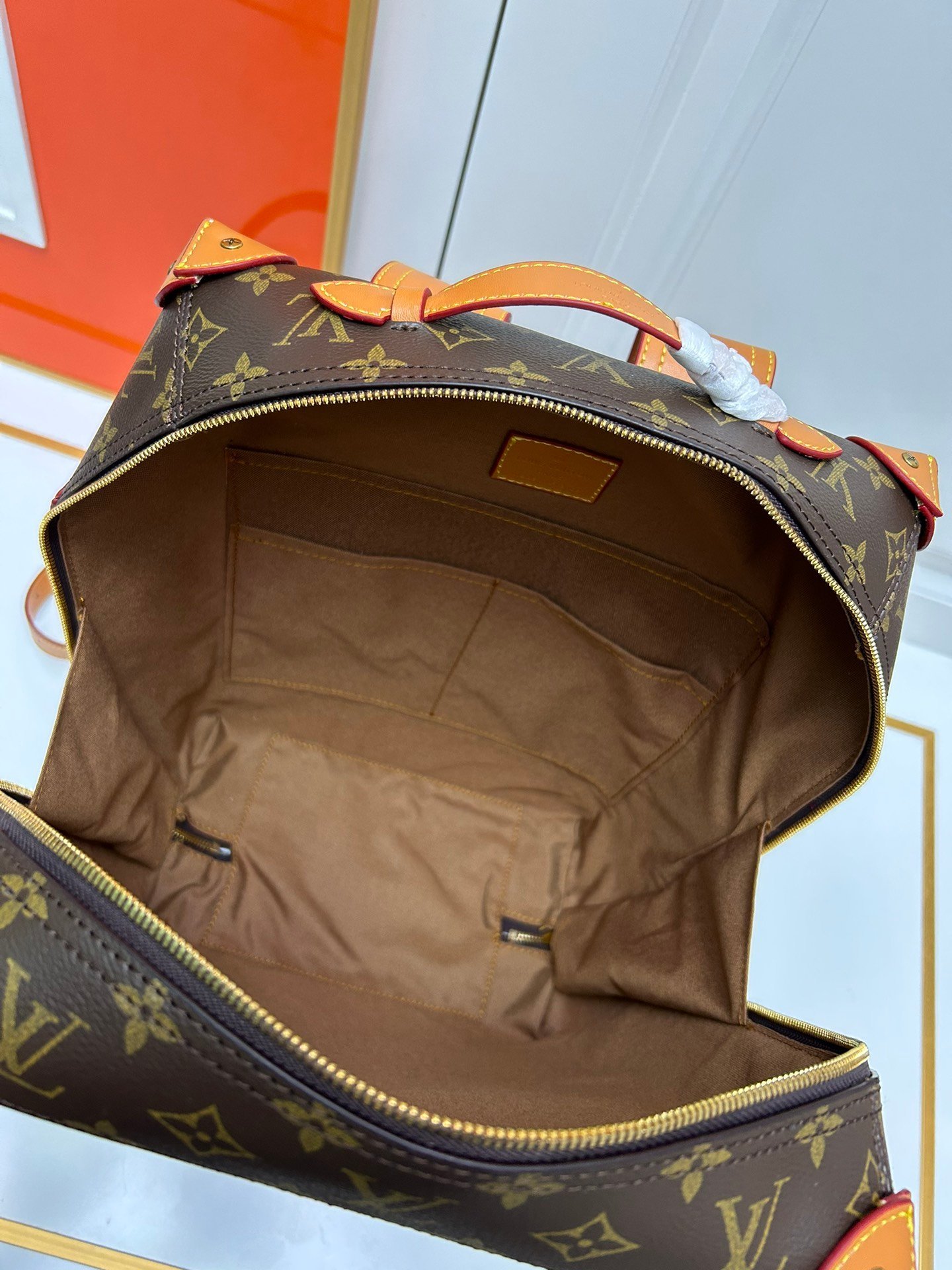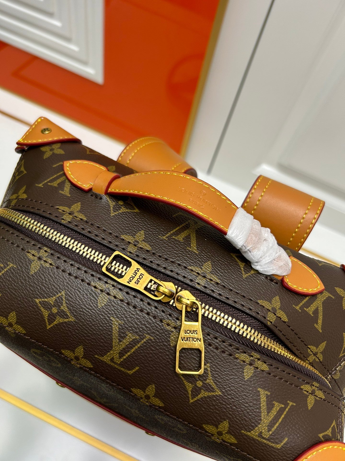 Retro trunk bag 44752, old flower. LV classic and refined trunk bag with fabric lining, aged gold metal parts, and full Monogram pattern. Zipper closure. Adjustable leather shoulder strap. Size: 36*28*14cm.