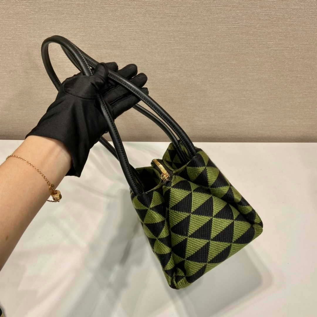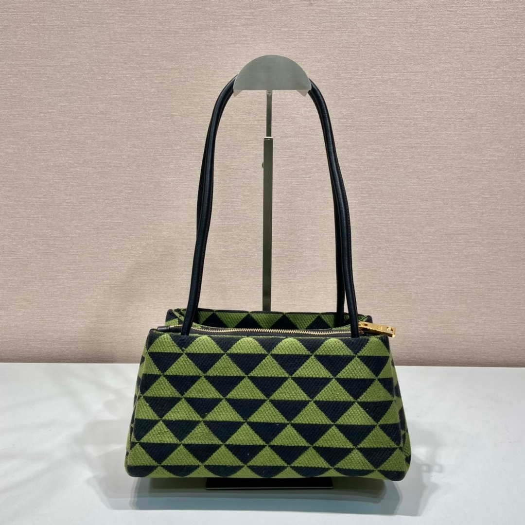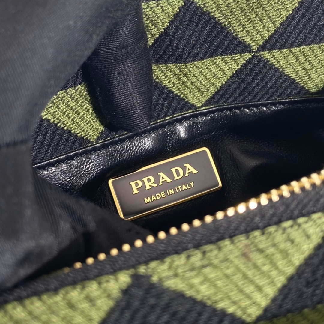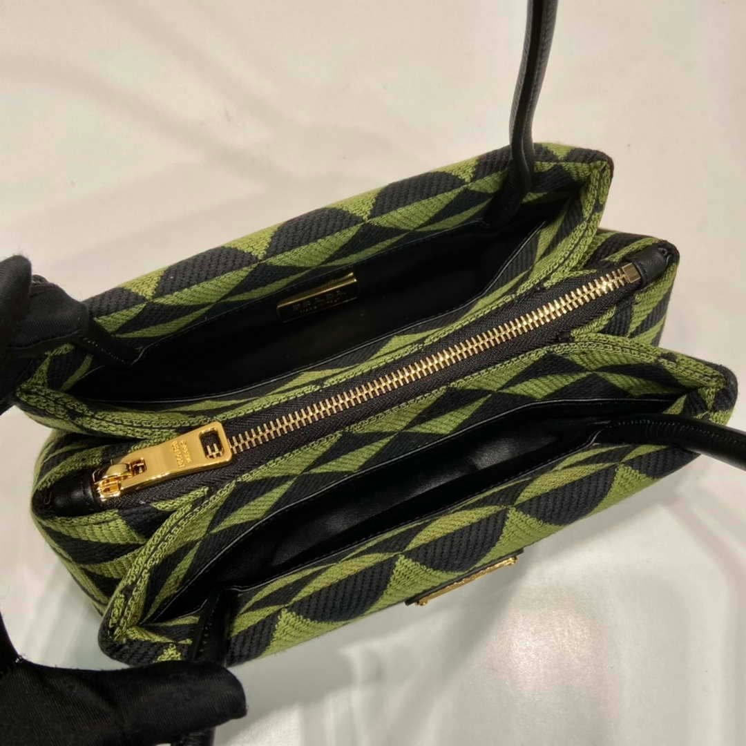 Prada 1BA368 From The Runway Small embroidered fabric Prada Symbole bag Black Ivy Green on sale now.
