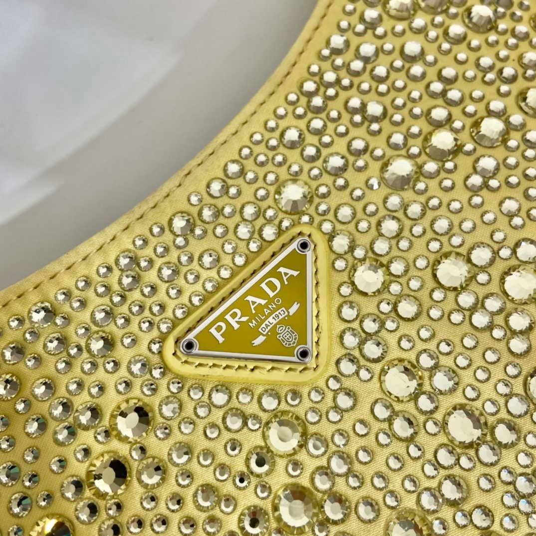 Prada 1BC169 Prada Cleo satin bag with appliqués Yellow on sale now.