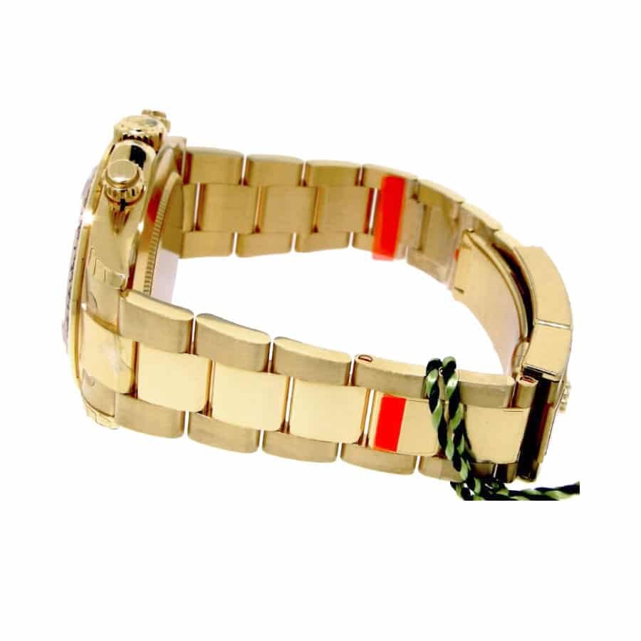 This Rolex Cosmograph Daytona Oyster Yellow Gold Black Dial 116508-0009 Replica is a high quality watch. It features a 904L stainless steel case with a yellow gold color and a sapphire crystal. The bracelet is also made of 904L stainless steel with an adjustable link and a folding clasp in yellow gold. The black dial has stick and dot indices and 904L stainless steel stick hands.