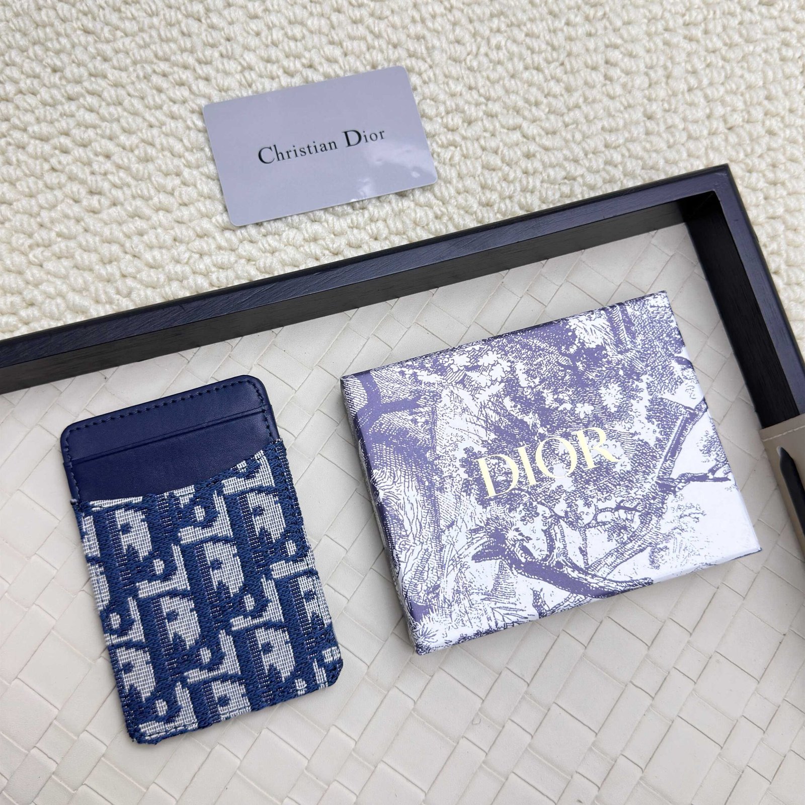 Dior’s new card bag, size: 11 * 7.5 * 1, model 2379 is carefully made of soft cowhide, decorated with rattan plaid noodle thread, and the front is embellished with the “CD” logo. Elegant and exquisite,