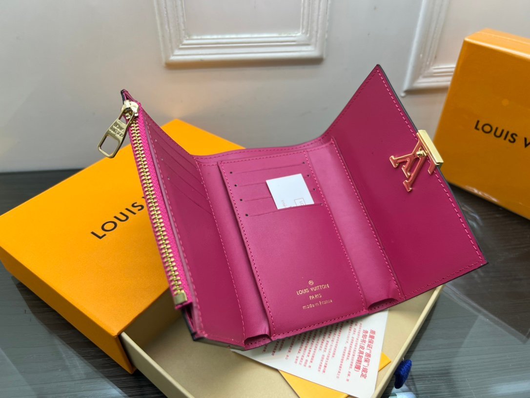 M62157 is crafted in Taurillon leather, and this Capucines mini purse is versatile and spacious to accommodate everyday belongings. The elegant bag wallet’s construction is ingeniously original and consists of two folding vertical lids, providing plenty of room for credit cards, change and banknotes. Size: 13.5 * 9.5 * 1.5cm