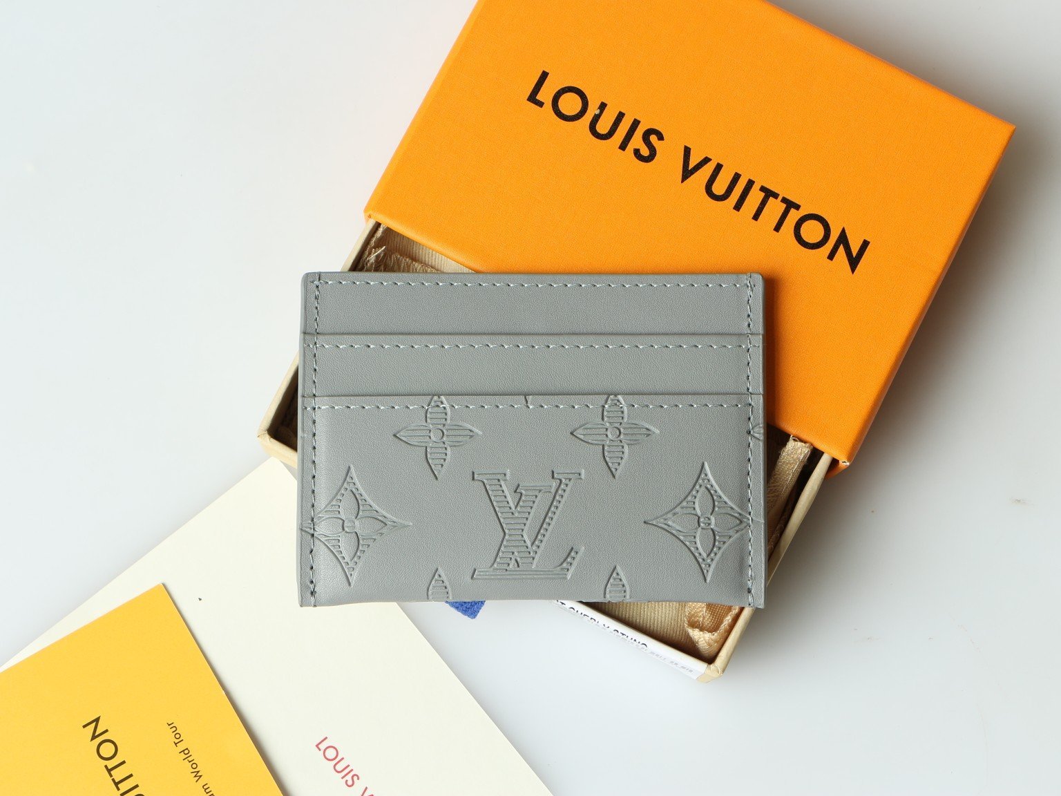 62170 striped embossed grey PORTE CARTES DOUBLE card holder, this card holder in the new Monogram Eclipse coated canvas is beautiful and stylish, and the size is small, which can be easily put in the pocket. Equipped with a central pocket and four slots, it can store credit cards, plane and ferry tickets, and business cards. Size: 11.0x 7.0x 0.6 cm