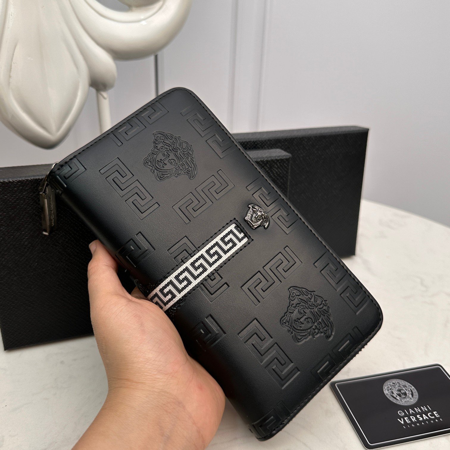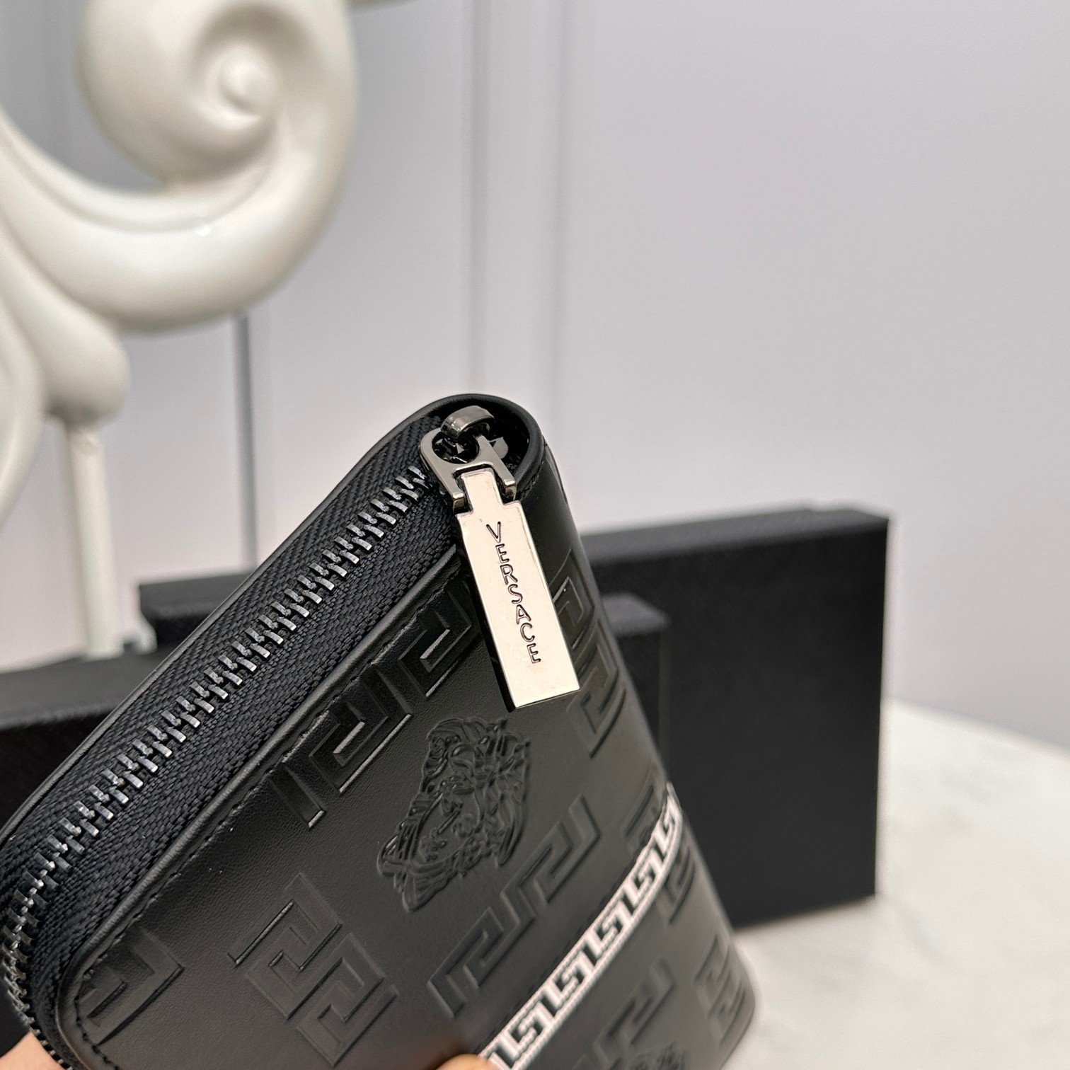 VERSACE! [Model] 666087 small wallet. [Size] 19-10-2.5cm. [Color] Black. High-end quality (original single genuine product). [Material] VERSACE counter purchasing classic! Original factory imported 🐄 cowhide! Genuine imported YKK marked hardware and zipper! Soft leather feel! Unique quality! Fashionable design! Complicated handmade structure.🎉 A must-have for trendy men!