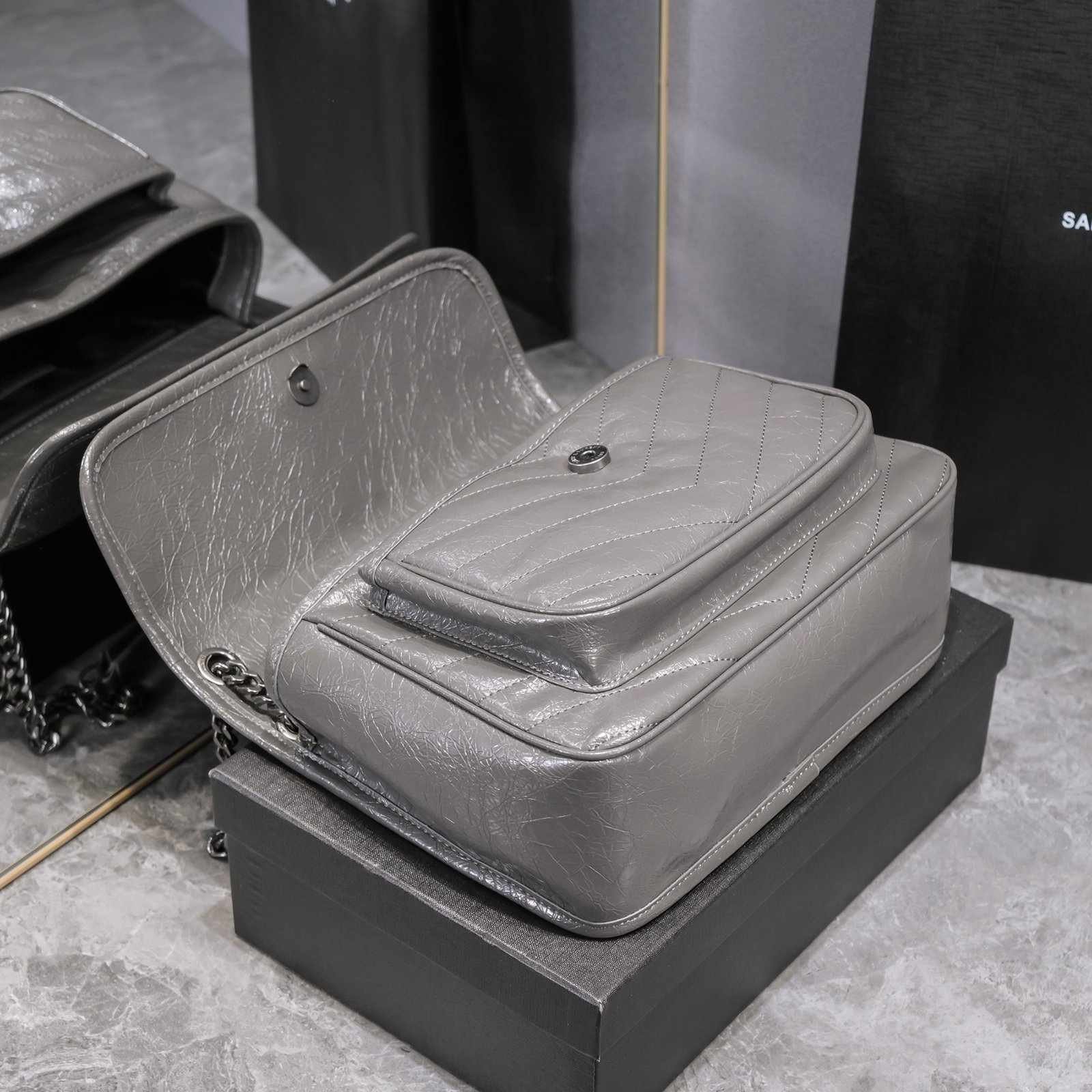 Large Saint Laurent Niki messenger bag – Top Italian two-tone baked tar cowhide is matched with retro hardware. The texture and gloss are very unique! The hardware is even more special. The surface of the hardware LOGO is wrapped with cowhide! Two compartments, one zipper pocket, and super large capacity! The oiled wax leather of the bag body is extremely soft to the touch. There is no problem with random folding. Model: 498894. Size: 28x20x8cm.