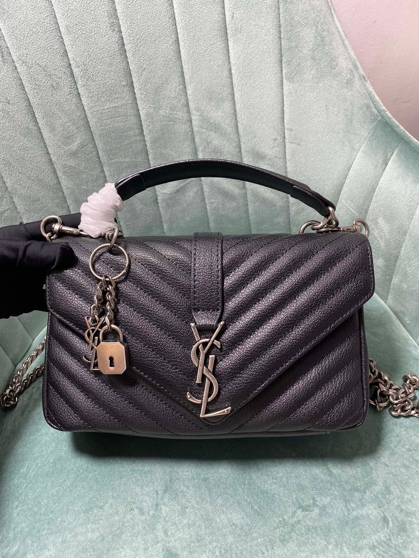 Large-sized cowhide with golden hardware. YSL Saint Laurent. A blockbuster at the counter. Exclusive in the market. European imported original leather. Hand-embroidered V-line. Super smooth, soft and comfortable. The bag shape is exquisite and practical. YSL metal buckle at the bag opening. The hardware is flawless. Exquisite craftsmanship in details. Equipped with an exquisite original pendant. Size: 24*18*8.5cm!