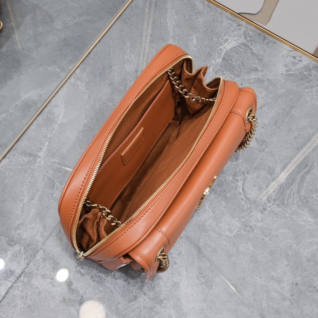 Italian custom vegetable tanned leather with gold chain, timeless matching, front flip and zipper opening and closing design, the visual impact is instantly full! The camera bag is super practical, and the size of daily travel is completely sufficient