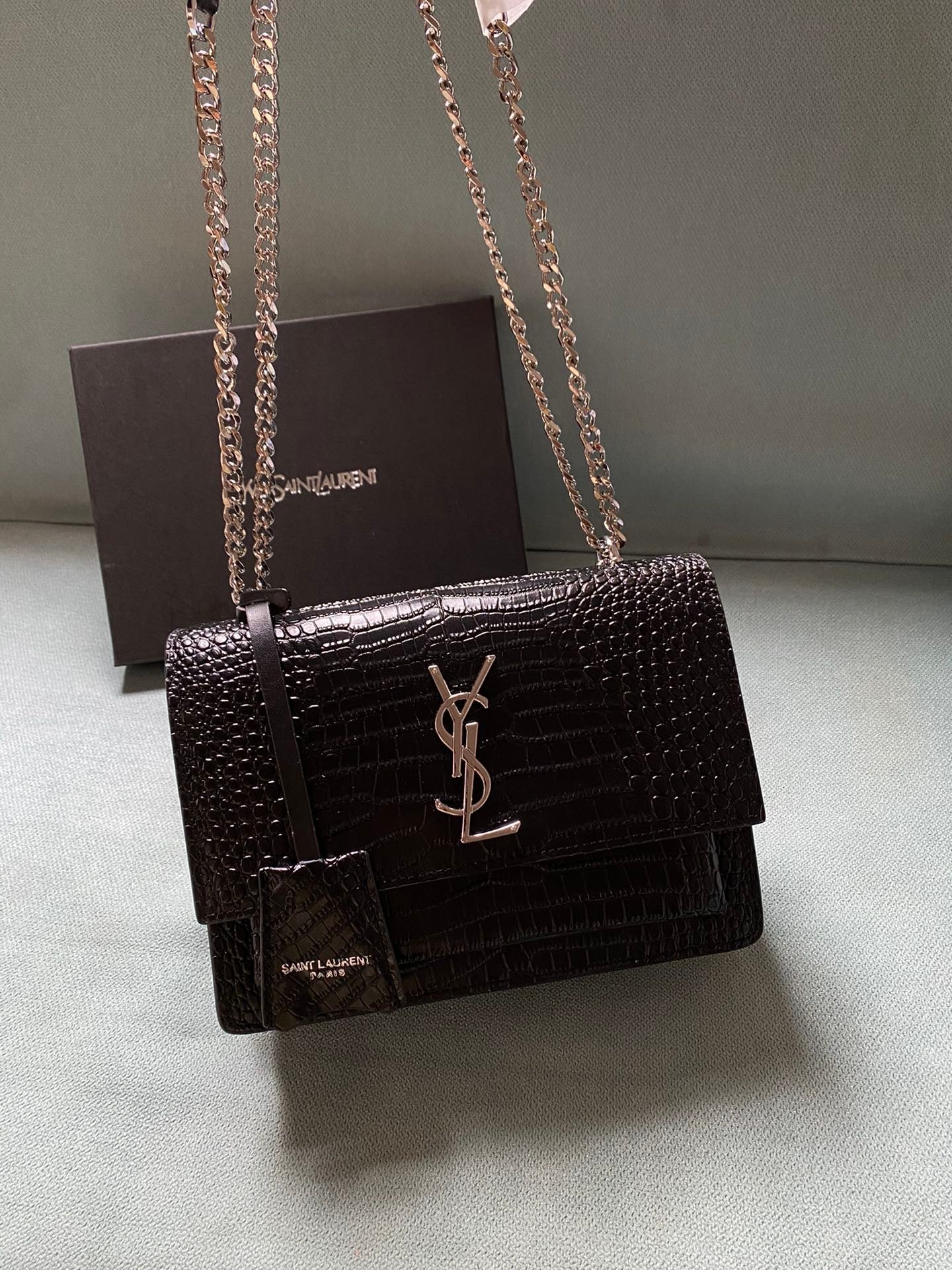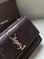 Silver buckle! The latest crocodile pattern in the store counter. The same sunset bag as Wang Ziwen and Zheng Xiuwen. Top imported original single cowhide crocodile pattern. High-end custom. Genuine version. Vacuum-plated antique silver hardware. The workmanship of leather, metal, etc. is simply impeccable! Crocodile pattern. Size: 22*14.