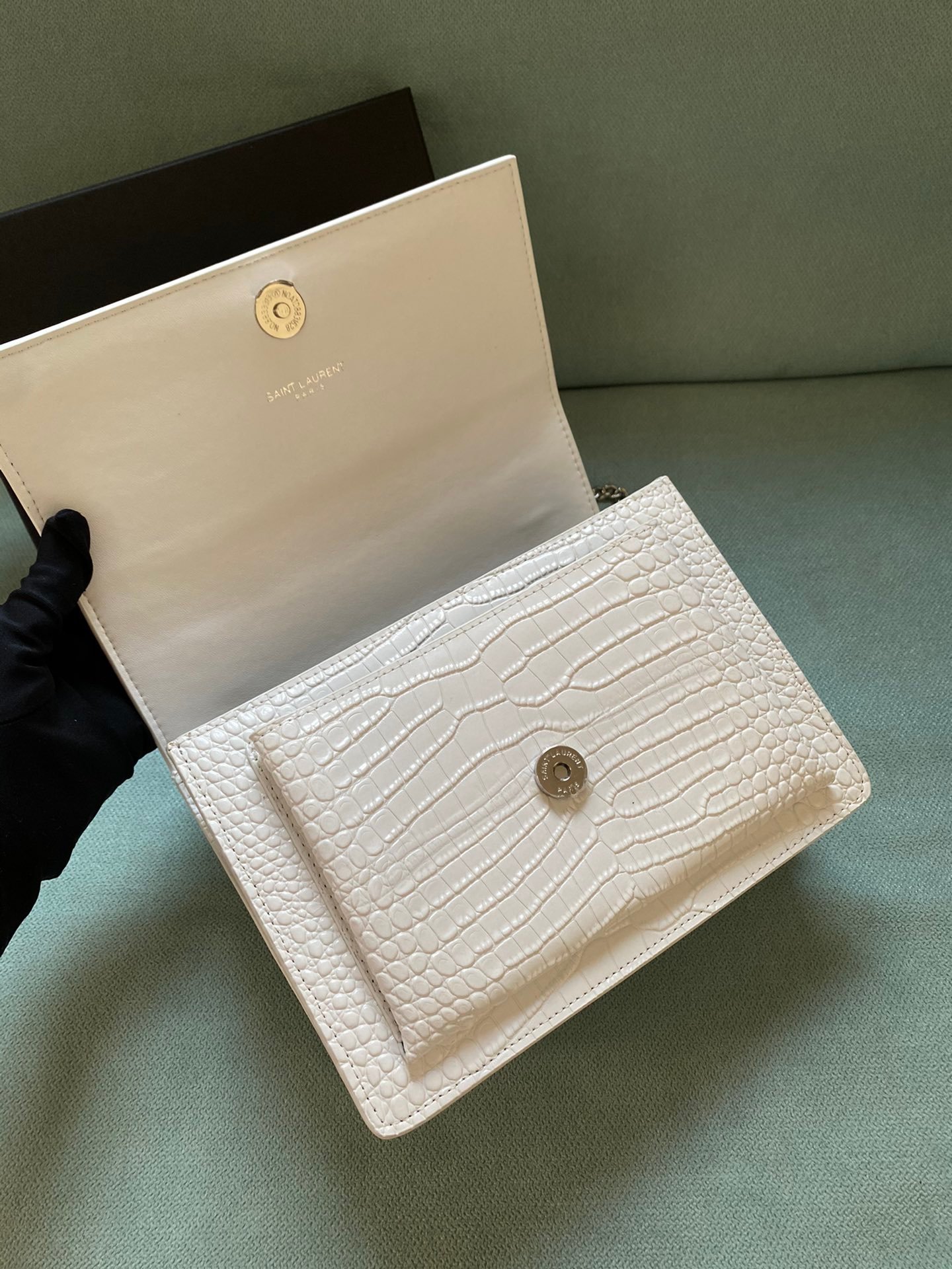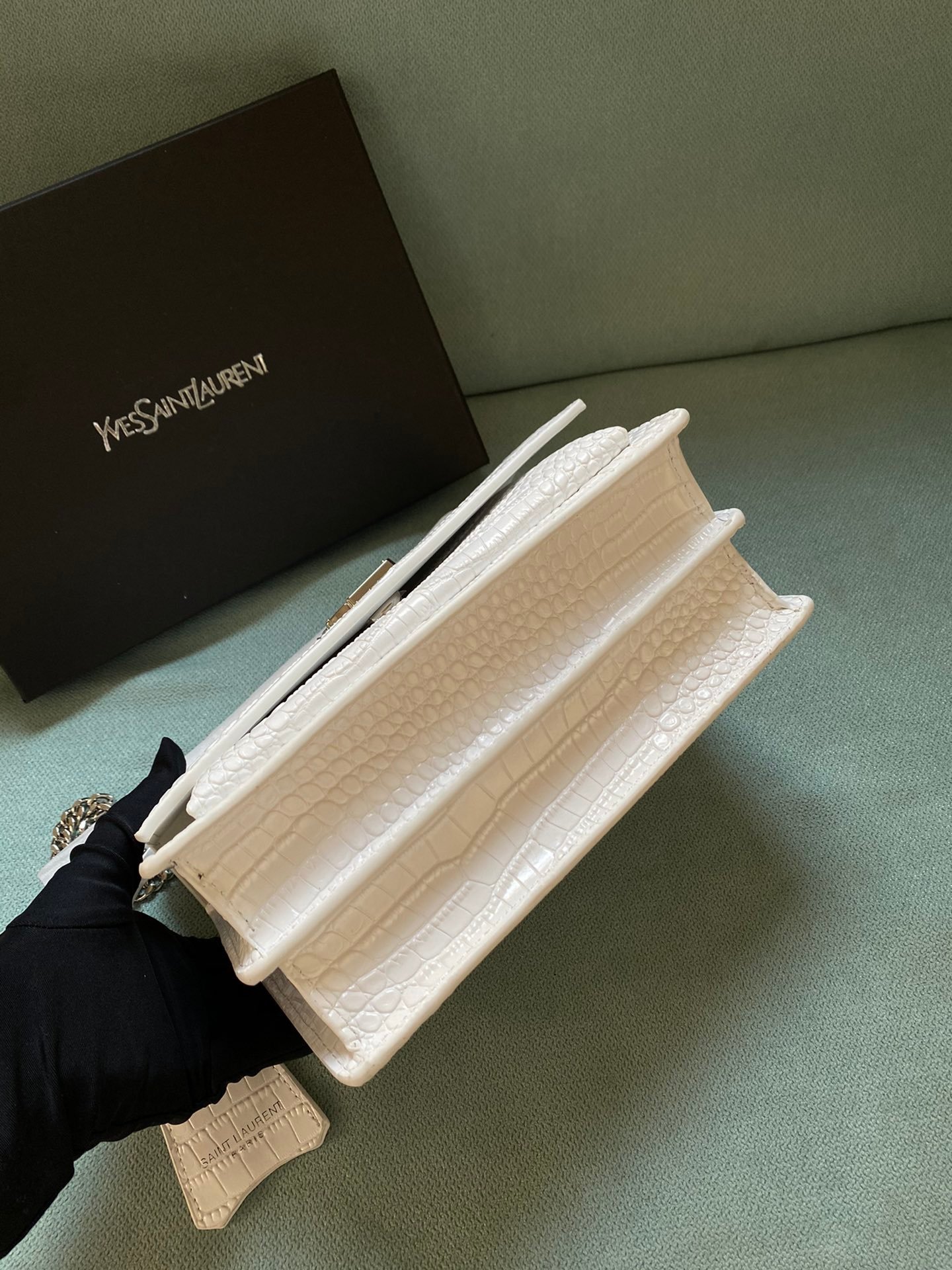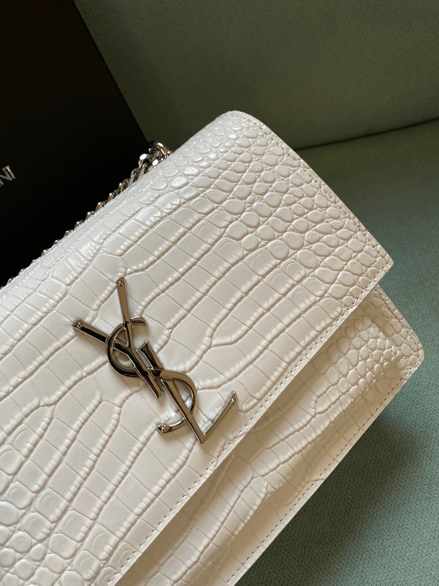Silver buckle! The latest crocodile pattern in the store counter. The same sunset bag as Wang Ziwen and Zheng Xiuwen. Top imported original single cowhide crocodile pattern. High-end custom. Genuine version. Vacuum-plated antique silver hardware. The workmanship of leather, metal, etc. is simply impeccable! Crocodile pattern. Size: 22*14.