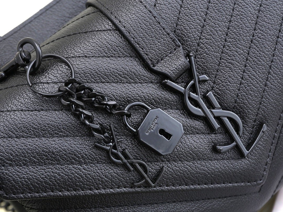 Handmade embroidered V-line, extremely soft and smooth, comfortable. The bag has an exquisite shape.👏👏👏 Practical. YSL metal buckle at the bag opening. The hardware is flawless. Exquisite handmade details. Equipped with an exquisite original hanging ornament.🍂🍂🍂🍂 Size: 24*18*8.5 cm.